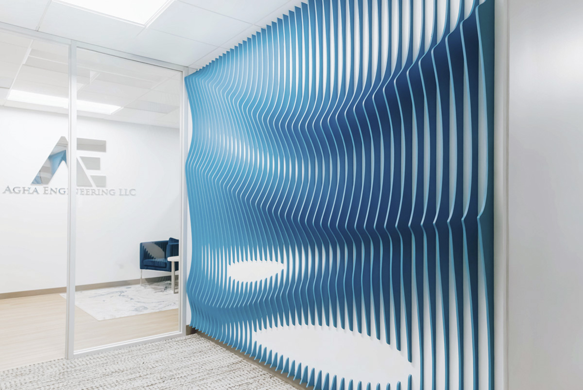 Transform any space into a visual masterpiece. Using textured materials that integrate branding, our custom walls serve as the focal point perfect for offices, lobbies, and retail spaces, that enhance your interior aesthetic while reflecting your brand’s identity.