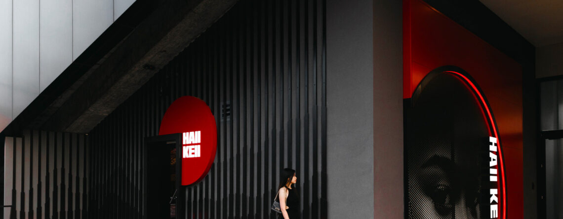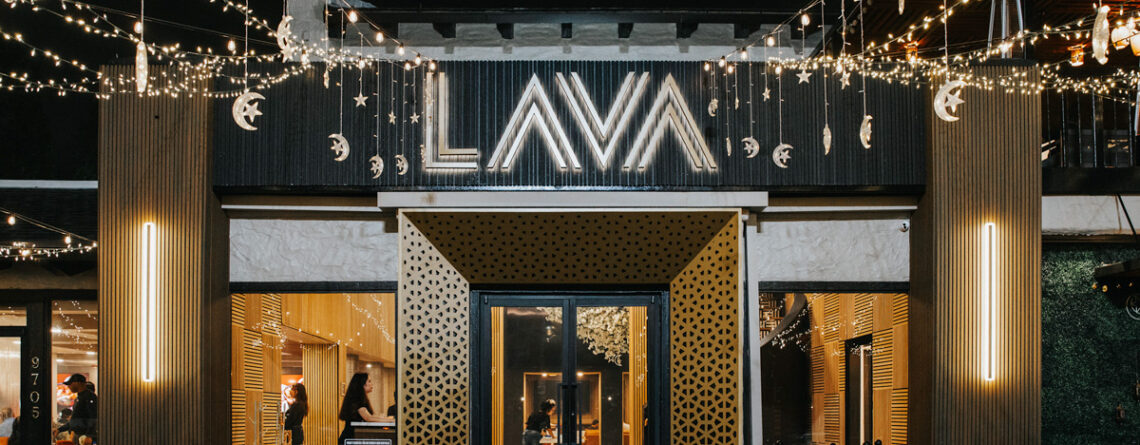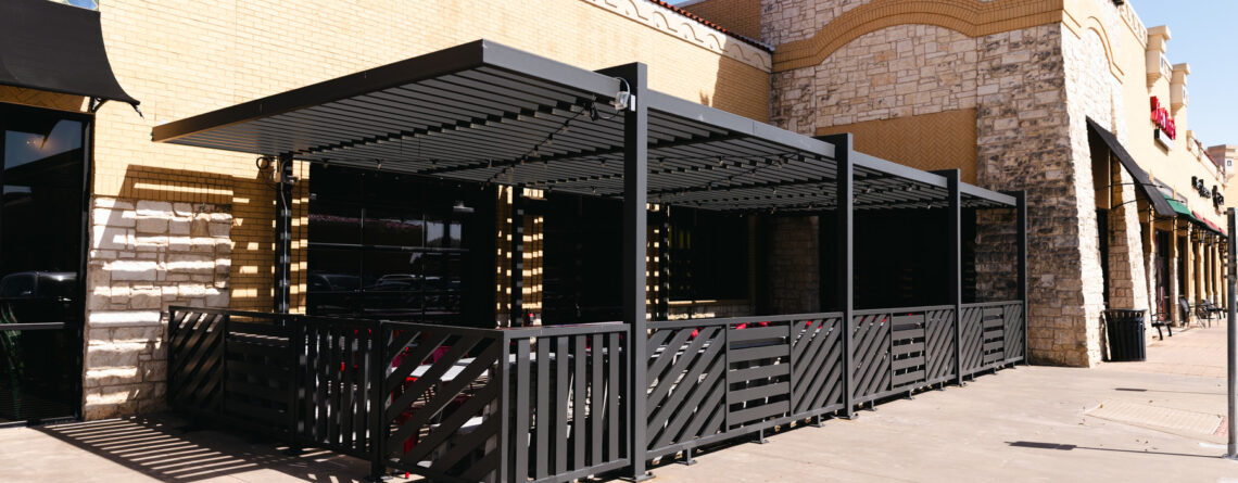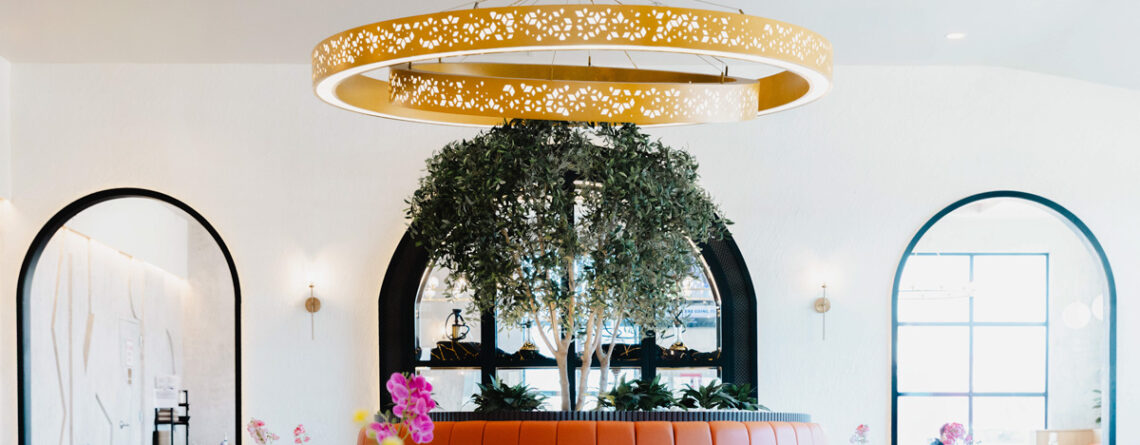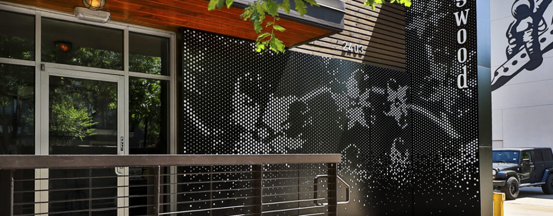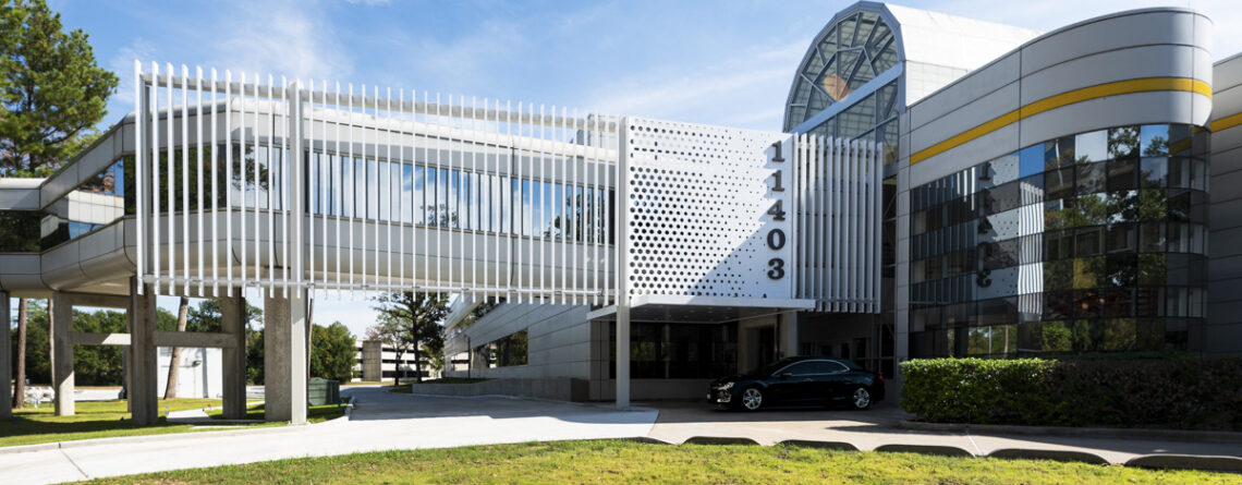 Residing within the Alexan in Houstons River Oaks area, Ivory Bridals edgeless front-lit channel letters sit upon the storefronts canopy. Featured in a gold dust metallic finish, these channel letters make a statement as a storefront piece.