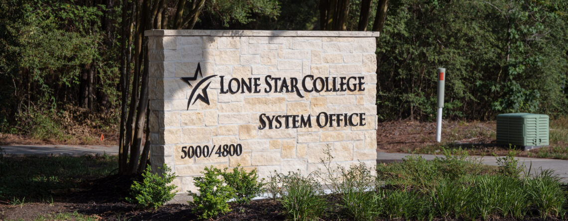 This sign uses Lonestar's branding to create a waypoint and entrance marker for students, staff, and visitors.