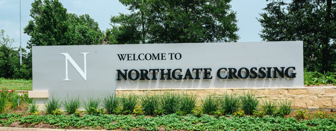 Northgate Crossing creates an elegant yet minimalist entrance signage for a multi-tenant residential complex